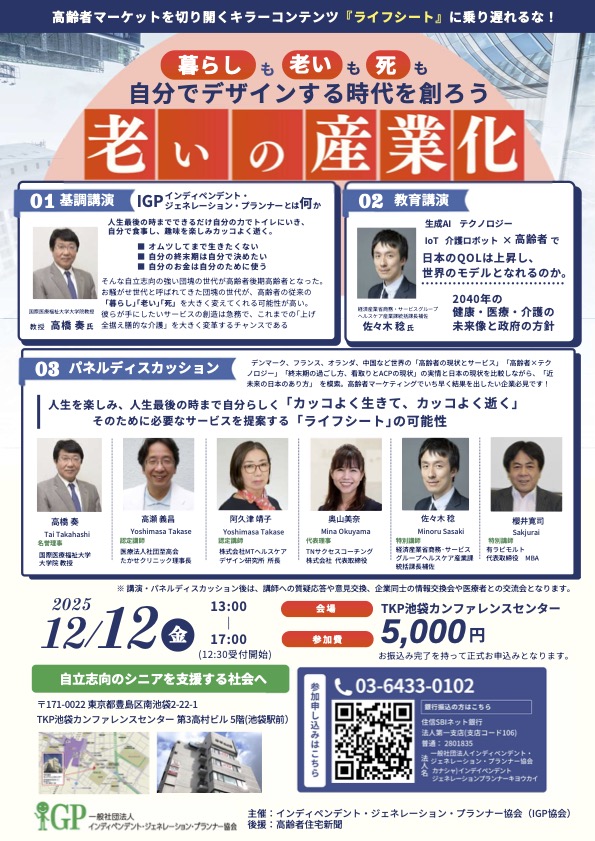 【2025年12月12日(金)】 IGP協会ビジョンフォーラム2025 ~老いの産業化~